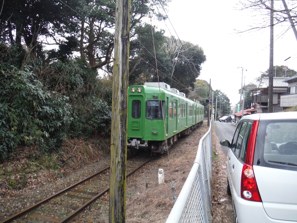 伐採の下見に伺った時に現場の隣に銚子電鉄のちんちん電車が走行中、ムックのようなかわいらしい電車が通過中、思わずカメラを向けました。 撮鉄ではないのでいまいちですがご覧ください。