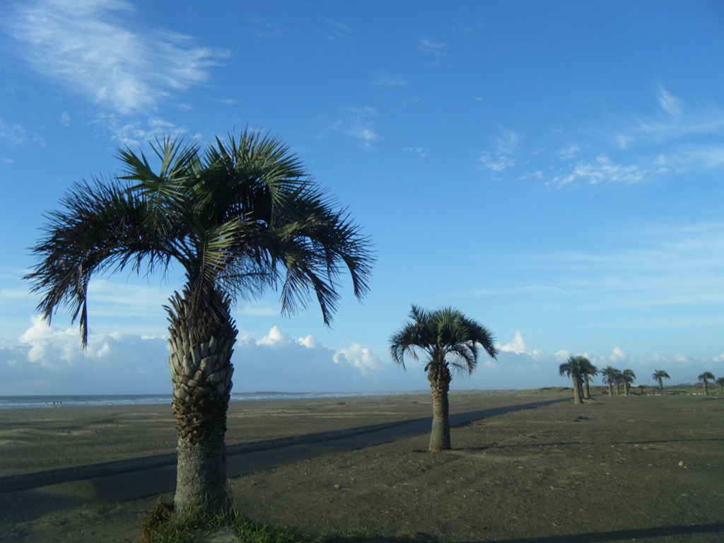 私が子供の頃には海の家が10数件 軒を連ねていましたがそれも見当たらず、無理やり植栽された不似合いなココスヤシが「強い風と冬の寒さで なかなか上へと伸びていけないんだ…」と言っているかのように 申し訳なさそうに立っていました。
