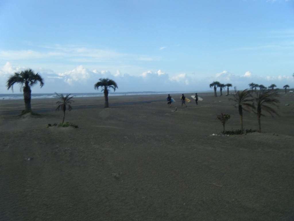 ココスヤシの間を縫ってサーファー達が波へと向かいます。私が20代の頃はサーファー達も若く 10代や20代だった記憶があるのですが 今海へと向かう彼らも高齢化しているようで ここにも一つ波の影響が出ているようです。